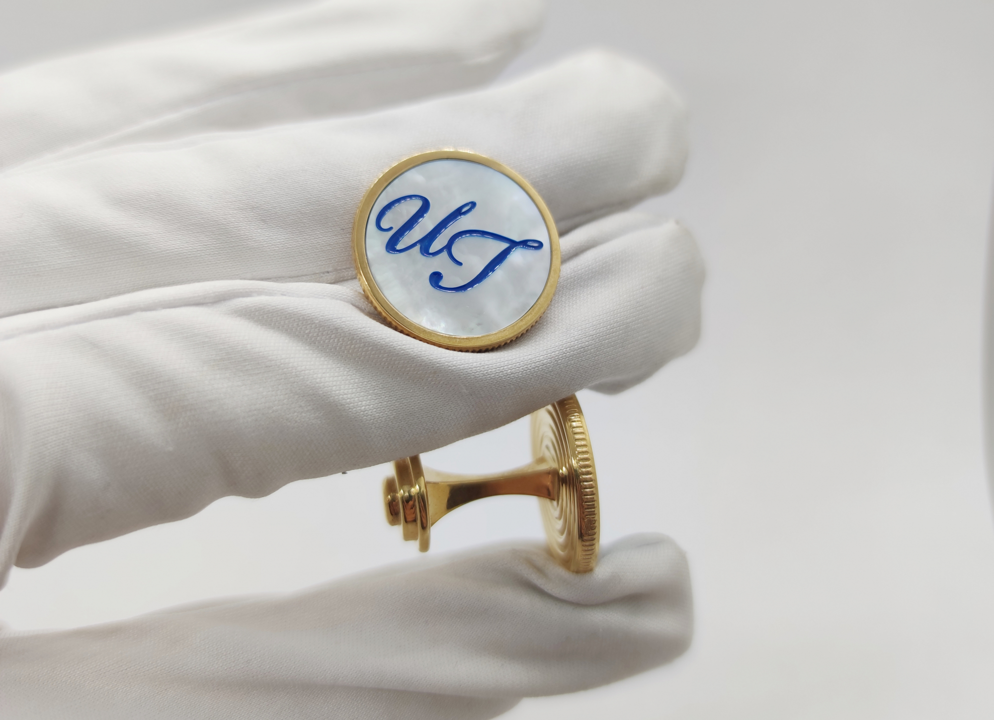 Запонки из бронзы - это великолепное сочетание высококачественного сплава и благородного перлатмутра, украшенного эмалью. Мы вырезаем изображение, логотип или инициалы и заиваем эмалью (черная, зеленая, синяя, голубая, красная и др.).